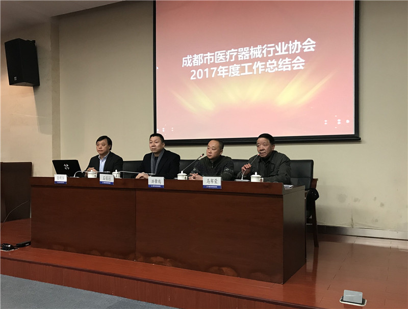 首先,由洪肈鸿副处调通报了2017年成都市食品药品监督管理局对全市医疗器械生产企业检查及质量情况,并介绍了2018年重点工作: