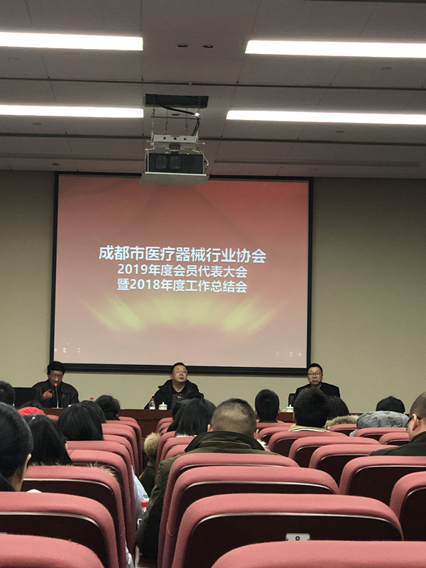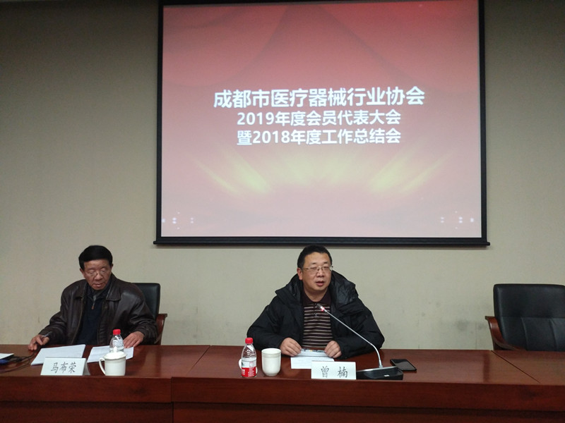 石保社会长讲话 接着,曾楠处长讲话,他先通报了2018年成都市食品药品监督管理局(现成都市市场监督管理局)对全市医疗器械生产企业检查及质量情况,并介绍了市场监管局2019年涉及到医疗器械行业的重点工作: 1、严打整治“春雷行动”,全国打击保健品,包括了药品和医疗器械产品。 2、充分的发挥各大专业医疗机构零售转换作用,推动企业新产品监制。 3、尽快推动产品注册工作。 4、增强法律法规意识。 5、重点整治医疗机构、经营企业。 6、加大诚信体系建设。 7、强化药品注册、生产、流通、使用监管。 同时,曾楠处长对协会今年的工作提出了具体要求,希望协会多组织相关活动,加强会员企业、专委会之间的沟通交流。