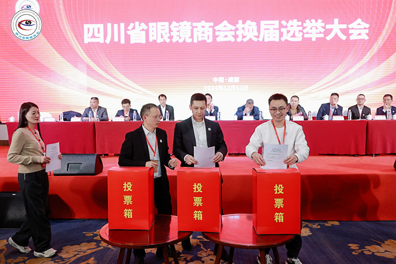2024年12月12日,四川省眼镜商会换届选举大会暨四川省眼镜商会第五届一次会员代表大会在成都第一江南酒店隆重举行。来自全省118家会员代表出席了大会。中国眼镜协会理事长杜同和;原民革中央副主席、省人大副主任钮小明;中国眼镜协会职业副理事长戴维平,驻会副理事长江波,副理事长浦永祥;副理事长、全国眼视光标准化技术委员会副主任孙环宝;国家眼镜玻搪制品质量检测中心常务副主任叶佳意;原成都市工商局局长谢述均;原四川省质监局质量监督处长景宗祥;四川省关心下一代工作委员会副主任、关心下一代基金会理事长刘华军;成都市关工委副主任、关心下一代基金会党支部书记、理事长廖励;中共四川省对外经济合作商会联合支部委员会、中共四川省建材家具装饰商会联合支部书记周明华及国内兄弟商/协会应邀出席了会议。