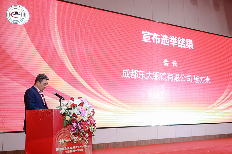 徐健宣布选举结果 随后,举行了四川省眼镜商会第五届一次会员代表大会。