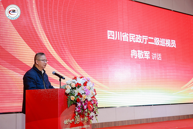 会议现场 会议由王鑫主持。 省民政厅二级巡视员冉敬军在讲话中:首先代表民政厅向新一届领导班子的产生和四川省眼镜商会第五届一次会员代表大会顺利召开表示热烈的祝贺!高度评价了商会在积极引导广大会员企业履行社会责任,维护消费者与会员的合法权益,积极参与乡村振兴和公益慈善事业,发挥了桥梁纽带作用。并提出三点建议:一是要坚持党建引领,在政治方向上强定力;二是要坚持依法自治,在规范建设上下功夫;三是要坚持非营利性,在公益事业上有作为。