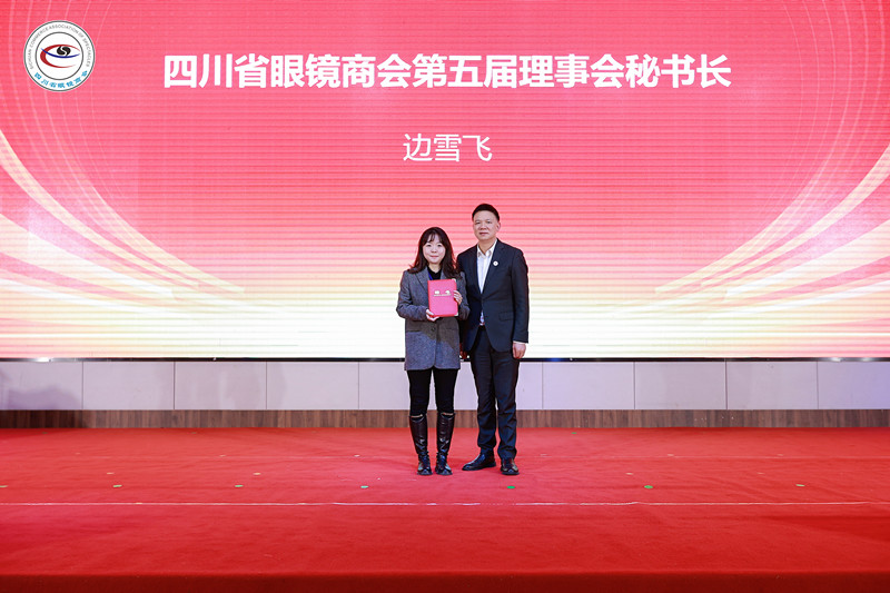 为顾问和技术顾问授牌 连任会长杨亦米在就职讲话中表示,作为四川省眼镜商会的会长将秉持五个原则:加强行业自律;推动技术创新;强化服务意识;促进交流合作;坚持引导广大会员恪尽社会责任、积极投身爱心、公益事业和慈善事业,全力以赴为大家服务。他强调:四川省眼镜商会是大家共同努力创建的家园,让我们携手共进,为四川省眼镜行业的繁荣发展而努力奋斗!在大家的共同努力下,四川省眼镜行业的明天一定会更加美好!