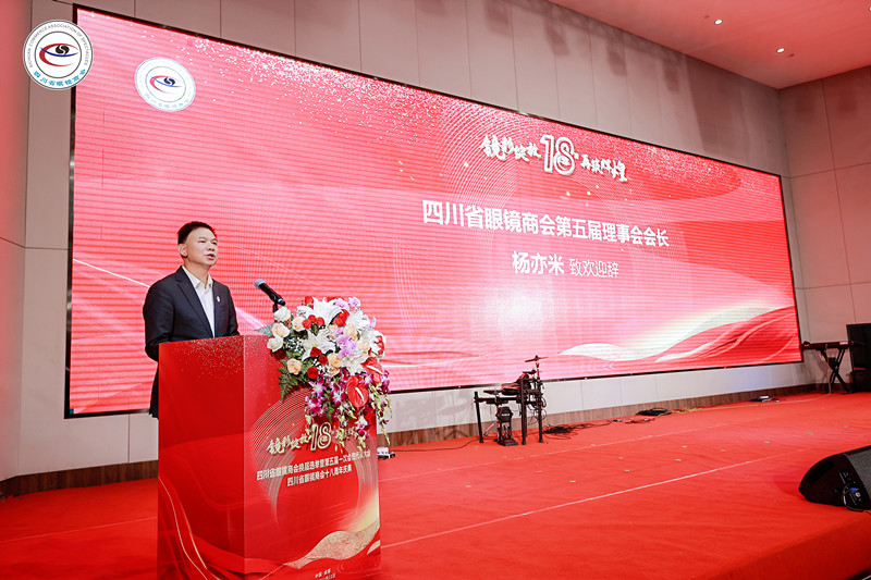 杨亦米会长就职讲话 杜同和理事长代表中国眼镜协会对大会的召开,新一届领导班子当选表示热烈的祝贺,向四川省眼镜行业为中国眼镜行业作出贡献的各位同仁表示衷心的感谢!他表示:商会在杨亦米会长和领导班子的带领下,以高度的政治责任感和历史使命感,坚持以党建为引领开展商会各项工作。高度肯定了商会在宣传贯彻党和国家的法律法规;反映会员和行业诉求;发挥桥梁纽带作用;加强行业自律;维护广大消费者与会员的合法权益;推动行业健康发展;提升从业人员的素质;加强行业宣传与交流,提升商会形象;组织参与乡村振兴和公益慈善活动;引导会员承担社会责任;严格按照章程履职尽责,加强商会自身建设,服务广大会员;服务国家发展大局和“健康中国”战略,促进四川省眼镜行业和中国视光产业的发展等方面,做了大量扎实有成效的工作。他希望:四川省眼镜商会新一届领导班子在地方有关部门的指导下,在会员单位的支持下,坚持以习近平新时代中国特色社会主义思想为指导,深入学习贯彻党的二十届三中全会精神,继续以党建为引领,坚持把促进企业、行业发展和服务民众视力健康做为商会工作的主题,全面加强自身建设,将商会建设成为政府靠得住、行业离不开、企业信得过、社会有影响的优秀行业组织。愿同四川省眼镜行业同仁和全国行业同仁一道,凝聚行业力量,群策群力,为推动四川省和我国视力健康产业持续健康发展作出新的更大的贡献!