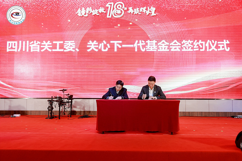 钮小明副主席致辞 随后,举行了“视觉关爱”公益活动签约仪式。杨亦米会长代表四川省眼镜商会分别与省关工、关心下一代基金会;成都市关工委、关心下一代基金会签署合作协议书。对在第四届公益慈善工作中突出贡献的爱心企业和爱心单位进行了表彰,以激励更多的会员单位积极参与到公益慈善事业中来,共同推动商会的发展。